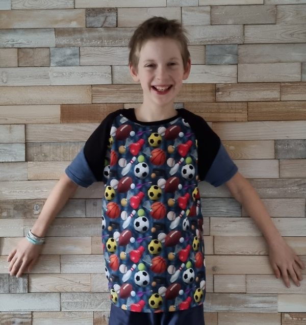 Hele mooie kleurrijke stof met allerlei sportbenodigdheden.
